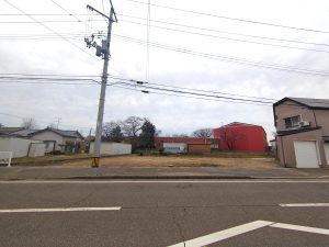 幅広い道路に面した南向きの土地、近くにはコンビニがあって