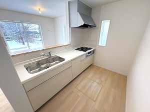- システムキッチン、カウンターキッチン、シャンプードレッサー、洗浄便座、浴室乾燥機、複層ガラス、モニタ付インターホン、床下収納、トイレ2箇所