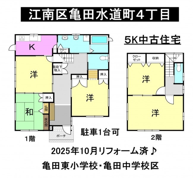 2025年10月リフォーム済(1Fキッチン・トイレ・洗面台入替、キッチン床・廊下をCFに張替、和室2部屋→フローリングに変更)